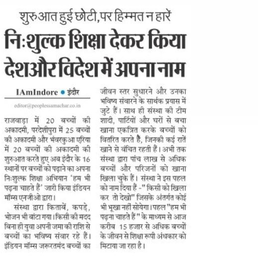 News Media Coverage of Indian Moms NGO
